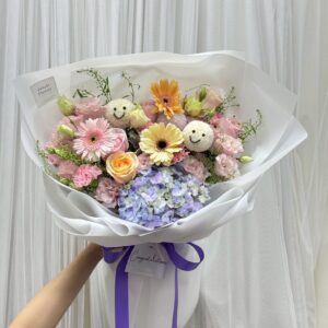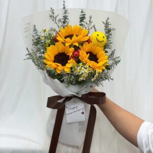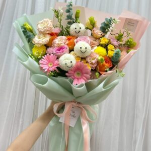 ร้านเราเป็นเจ้าแรกในไทยที่เริ่มทำช่อดอกไม้หน้ายิ้มจนตอนนี้เป็นกระเเสขึ้นมาในไทย เราออกแบบเองทุกช่อไม่ซ้ำใคร ที่สำคัญเนื่องจากเป็นร้าน original มั่นใจในคุณภาพเละความสวยได้เลย เราใส่ใจรายละเอียดในทุกช่อ ลูกค้ายังสามารถให้ทีมเราออกแบบให้เข้ากับอีเว้นท์ต่างๆได้อีกด้วย