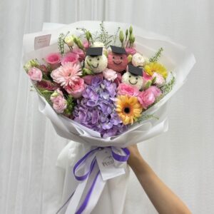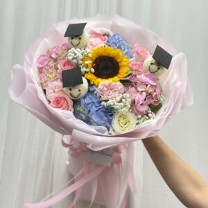 ช่อดอกไม้รับปริญญาหน้ายิ้ม ออกแบบโดยร้าน Petale bangkok ร้านเเรกร้านเดียวเท่านั้น โดดเด่น สวยงาม ทันสมัย มีเอกลักษณ์เฉพาะร้านไม่ซ้ำใคร แถมยังมีทีมงานคอยช่วยออกแบบให้ลูกค้าตามความชอบ มีงานรับปริญญาที่ไหนบอกเลยต้องเจอดอกไม้ร้านเราเเน่นอน สนใจรีบจองนะค้า เพราะคิวเต็มไวสุดๆ การันตีโดยการถูกจัดเป็น 1ใน 6 ร้านดอกไม้รับปริญญายอดนิยมปี2020 โดย women.trueid.net