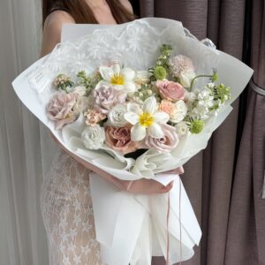 ร้านเราสามารถออกแบบตามความชอบของลูกค้า ไม่ว่าจะมีแบบมาเอง หรือ อยากให้เราช่วยออกแบบขึ้นมาใหม่ ทีมเราพร้อมจะทำดอกไม้ที่ไม่ซ้ำใคร ให้กับลูกค้าคนพิเศษทุกท่าน ส่วนเรื่องราคาไม่ต้องห่วง ทีมเราสามารถจัดตามงบที่ลูกค้าต้องการได้ไม่มีปัญหา