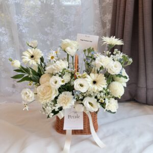 กระเช้าดอกไม้ ของขวัญที่เหมาะที่สุดสำหรับการเยี่ยมไข้ หรือฝากผู้หลักผู้ใหญ่ ใช้เพื่ออวยพรให้สุขภาพร่างกายเเข็งแรง นอกจากนี้ยังเหมาะกับงานเปิดตัวเเสดงความยินดีอีกด้วย