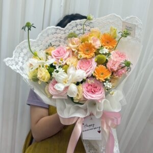 ช่อดอกไม้ขนาดกลาง เป็นขนาดช่อที่ถูกเลือกมากที่สุด เพราะด้วยความที่ไม่เยอะไป เเต่ไม่น้อยไป ทำให้ช่อขนาดนี้เหมาะกับทุกๆโอกาสสำคัญ ไม่ว่าจะ วันเกิด วันครบรอบ งานรับปริญญา เราจะทำให้วันนั้นๆของพวกคุณเป็นที่น่าจดจำแน่นอน