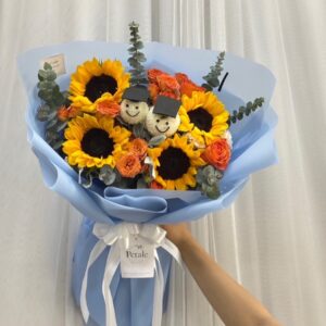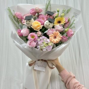 มีเทศกาลรับปริญญาที่ไหน ต้องเจอดอกไม้จากร้านเราแน่นอน เพราะเราเป็นร้านดอกไม้อันดับต้นๆที่คนเลือกใช้ในงานรับปริญญา จุดเด่นของร้านเราก็คือความสวยพรีเมี่ยมและยังออกแบบช่อดอกไม้ให้เป็นเอกลักษณ์เฉพาะของลูกค้าเเต่ละท่านโดยผู้เชี่ยวชาญ มีช่อเดียวไม่ซ้ำใครแน่นอน และไฮไลท์ของร้านเราก็คือตุ๊กตารับปริญญาที่แทรกเข้าไปกับดอกไม้ ซึ่งออกแบบโดยเราร้านเเรกร้านเดียวเท่านั้น รับรองว่าจะต้องโดดเด่นและทำให้งานรับปริญญาของคุณสมบูรณ์แบบที่สุด
