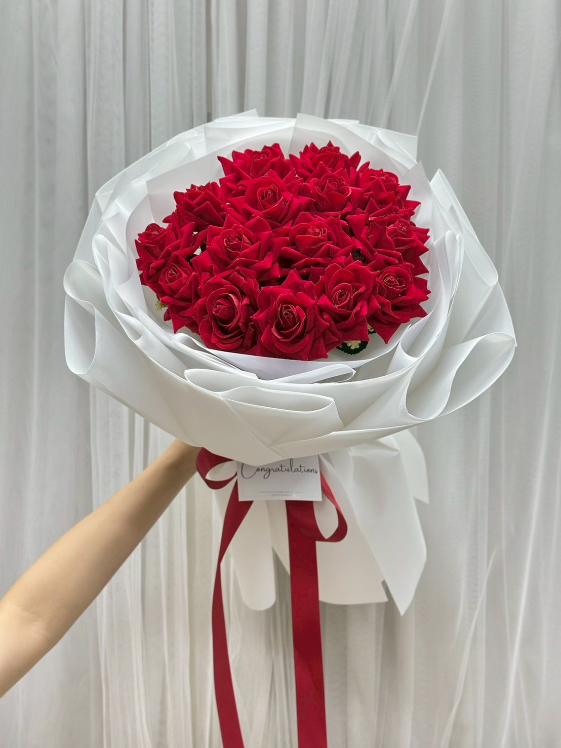 - สีและขนาดดอกไม้เเต่ละชนิดจะเเตกต่างตามฤดูกาล ร้านดอกไม้เราจะปรับเปลี่ยนให้สวยงามและเหมือนตามแบบมากที่สุด