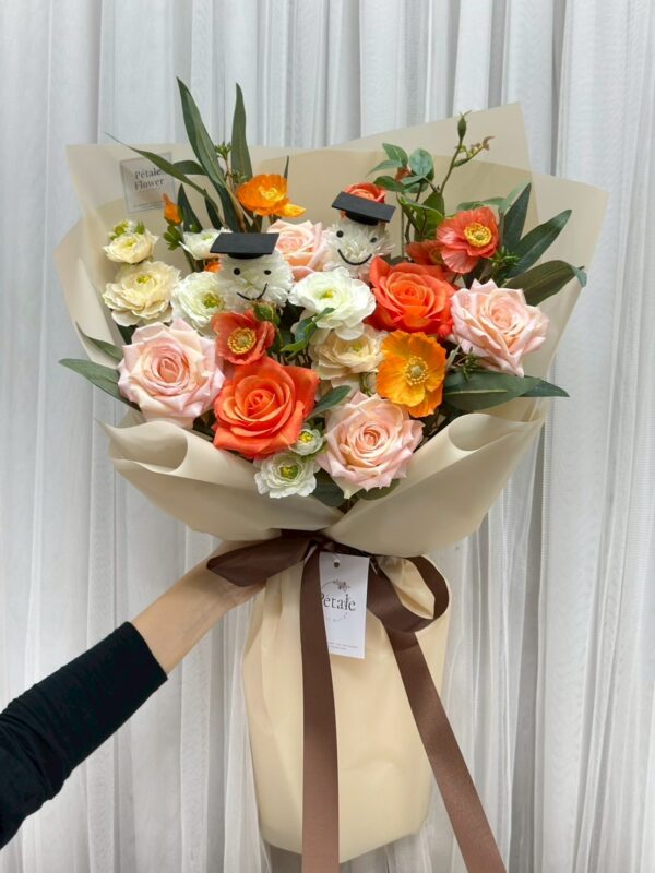 - สีและขนาดดอกไม้เเต่ละชนิดจะเเตกต่างตามฤดูกาล ร้านดอกไม้เราจะปรับเปลี่ยนให้สวยงามและเหมือนตามแบบมากที่สุด