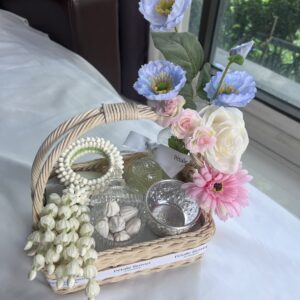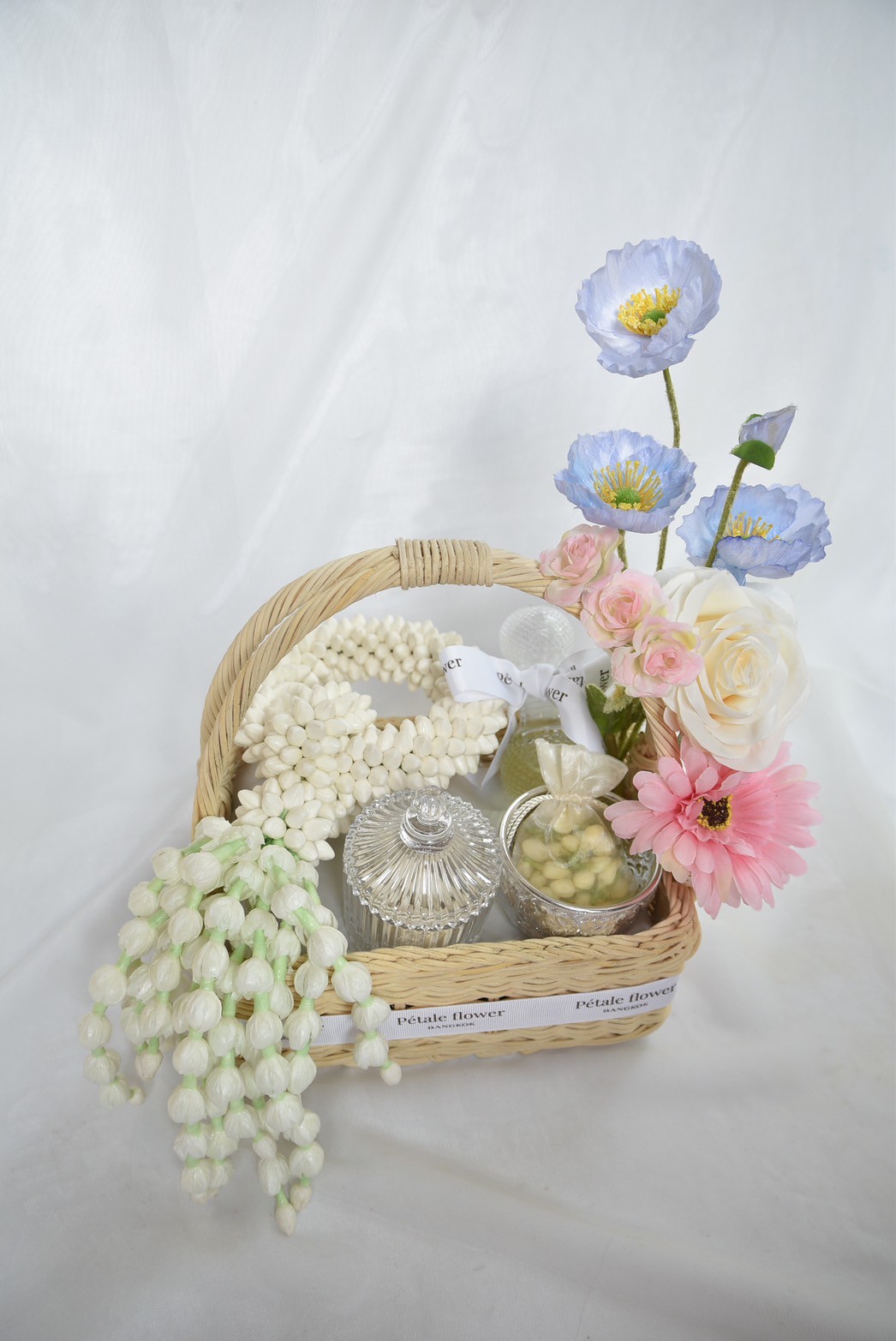 -ตะกร้าไม้ไผ่สานประดับดอกไม้