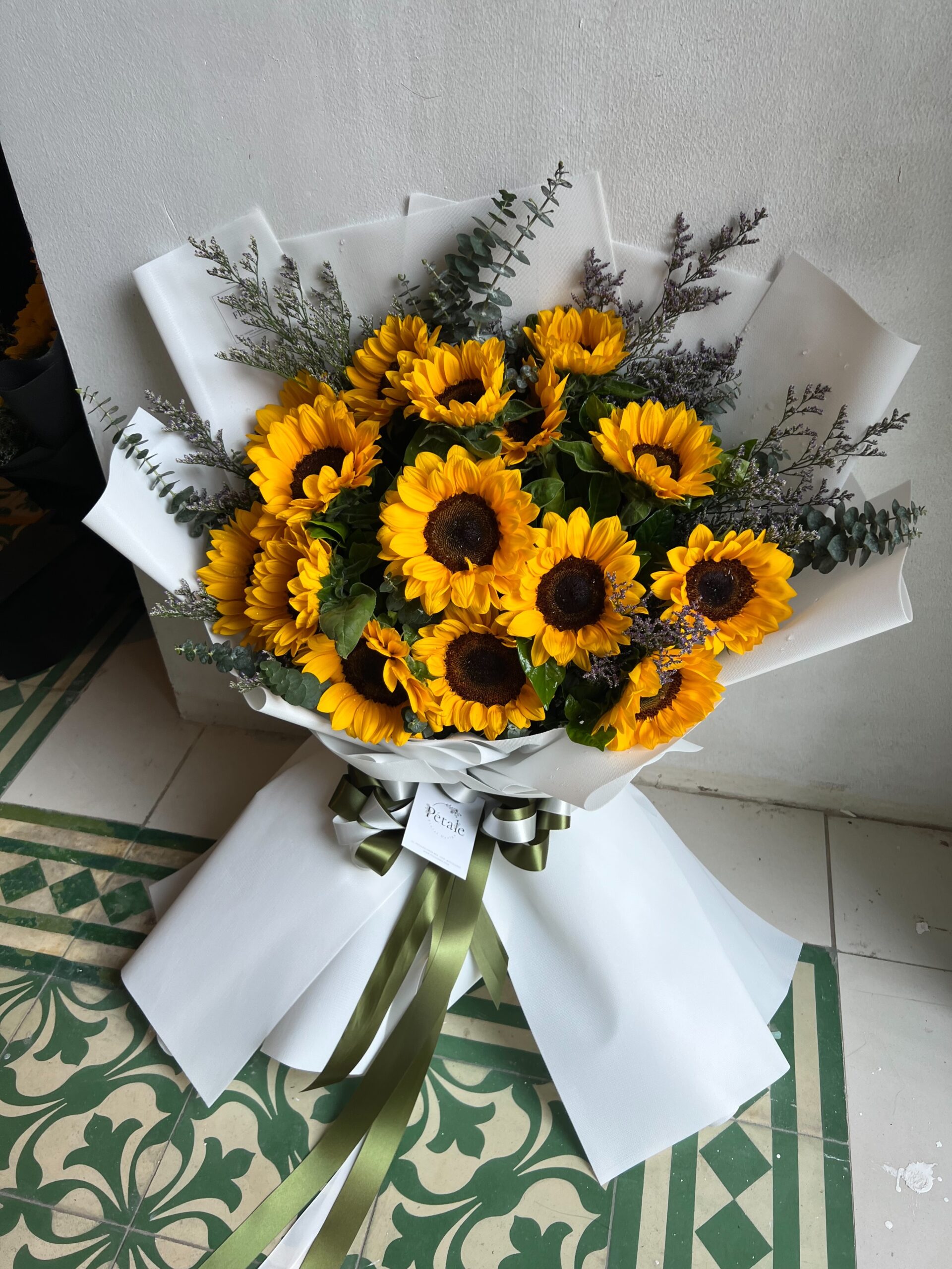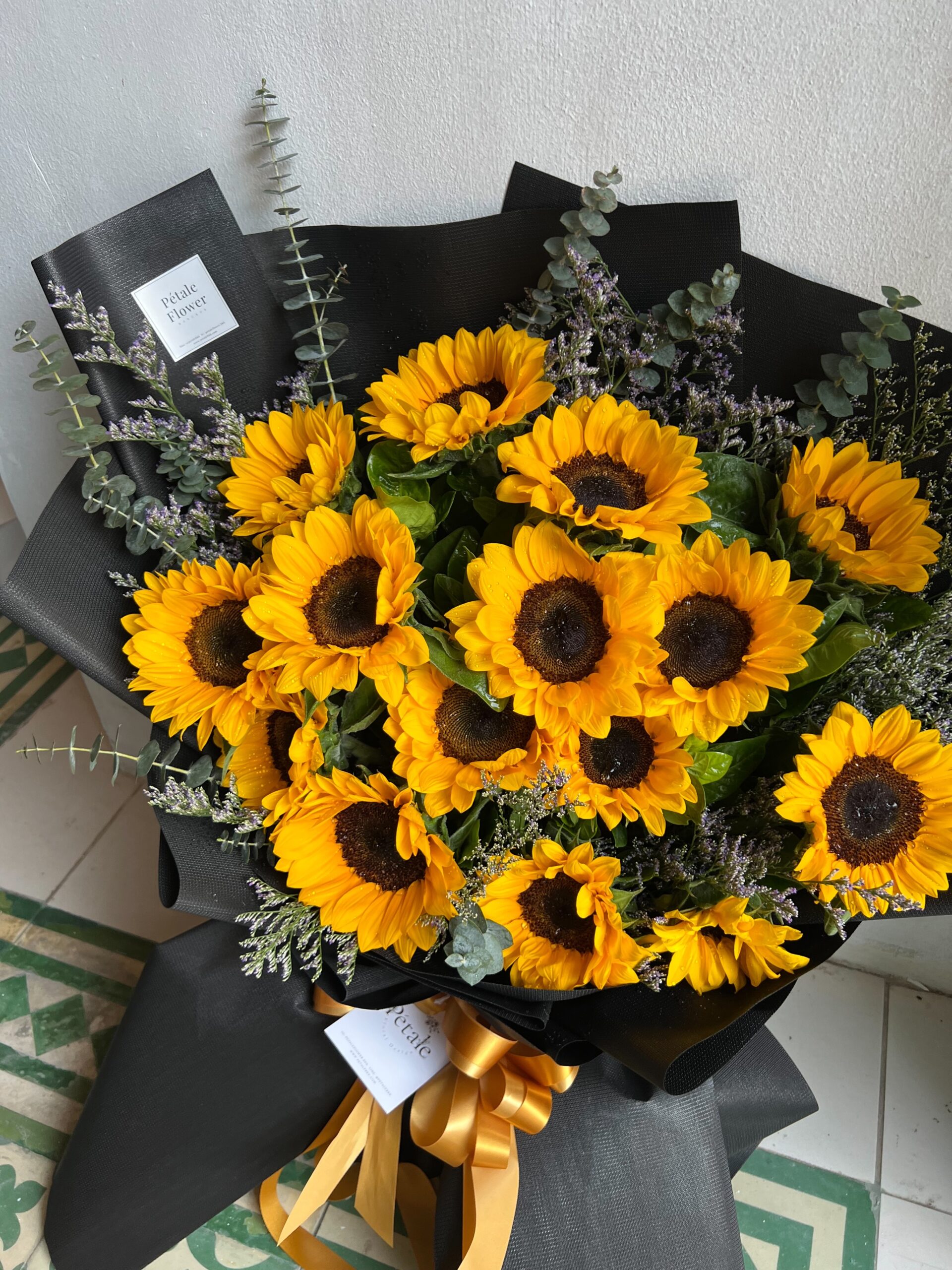 ช่อทานตะวันช่อใหญ่สุดอลังการ ช่อนี้พรีเมี่ยมสุดๆ เหล่าดาราเซเลปมักเลือกช่อนี้ไปมอบให้คนสำคัญในวันสำคัญต่างๆ ไม่ว่าจะเป็น งานวันเกิด งานวันครบรอบ งานแสดงความยินดี และอื่นๆอีกมากมาย บอกเลยว่าช่อนี้สวยปังสุดๆ พลาดไม่ได้จริงๆ