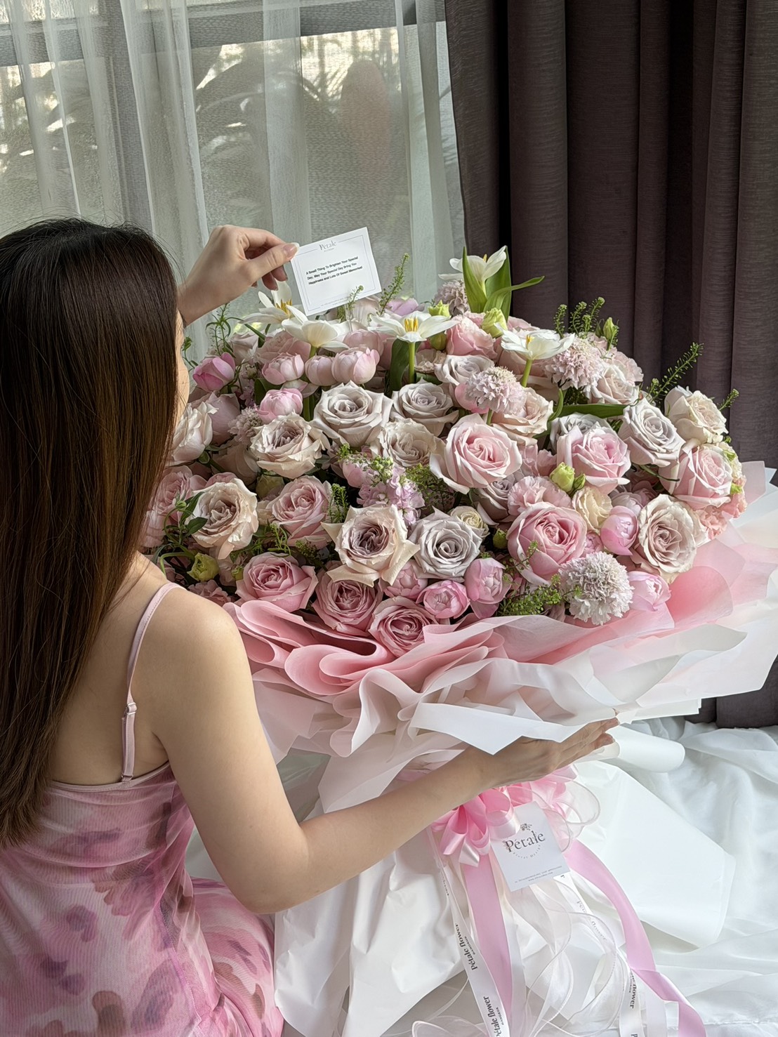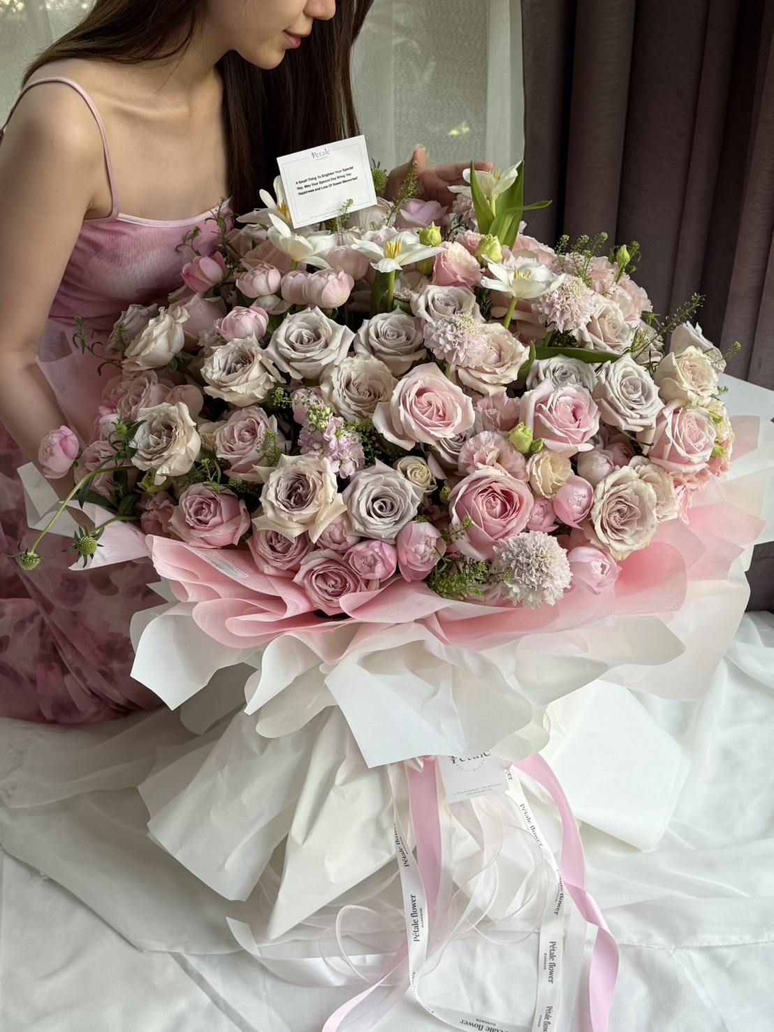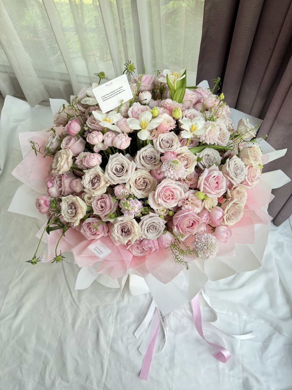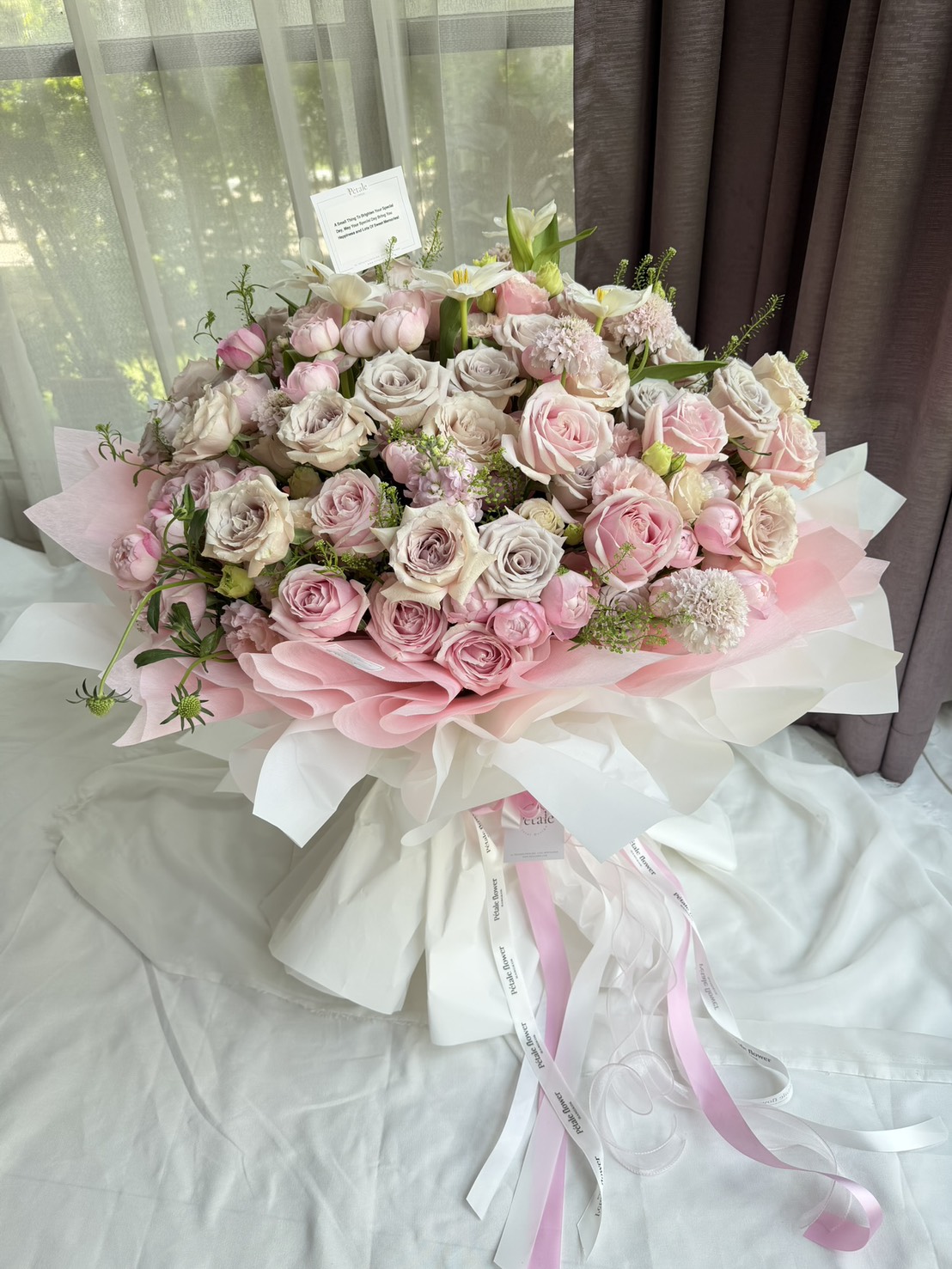 - สีและขนาดดอกไม้เเต่ละชนิดจะเเตกต่างตามฤดูกาล ร้านดอกไม้เราจะปรับเปลี่ยนให้สวยงามและเหมือนตามแบบมากที่สุด