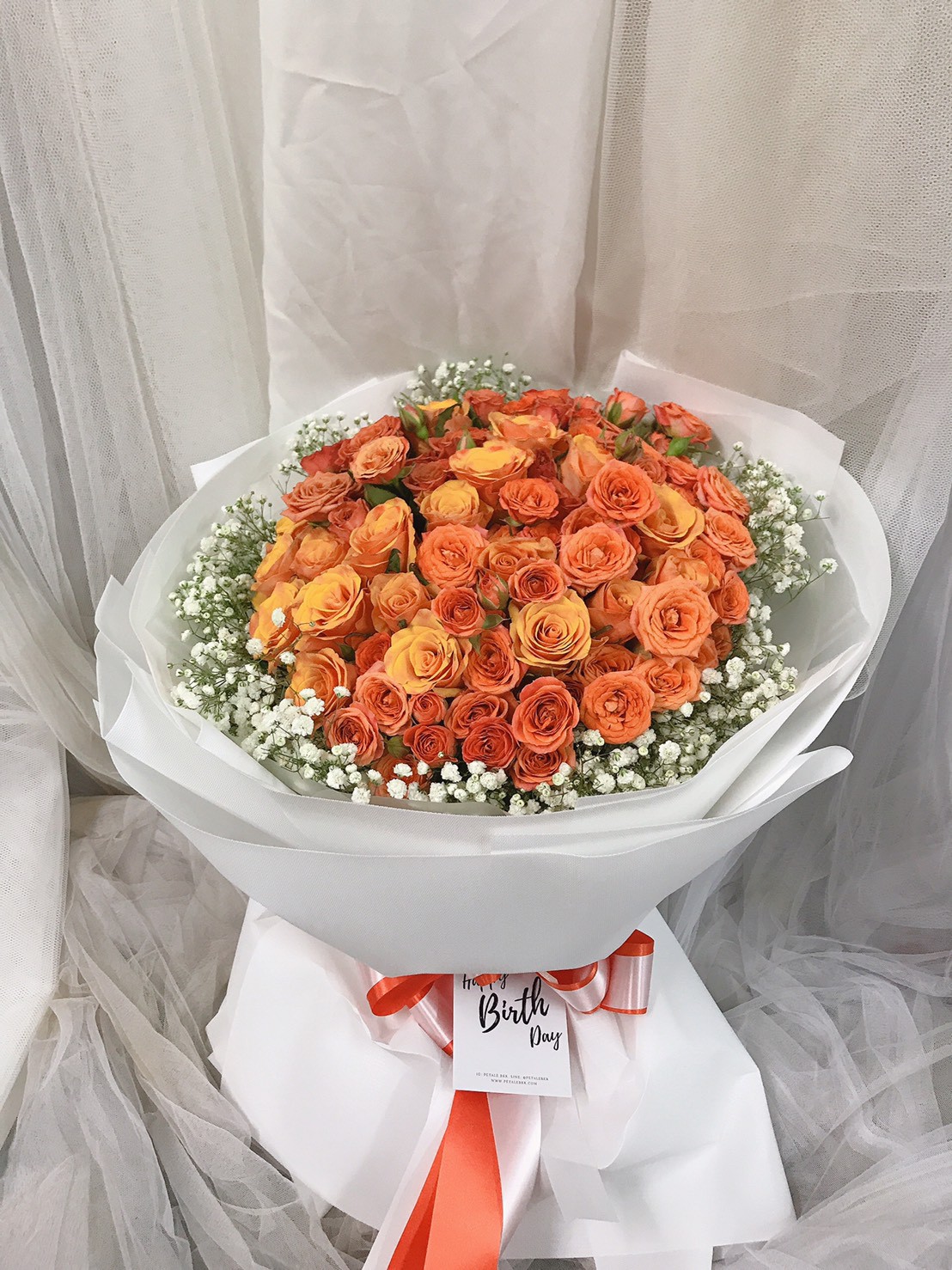 ช่อกุหลาบสีส้มนอก 50 ดอก ให้ความหรูหราพรีเมี่ยมแบบสุดๆ