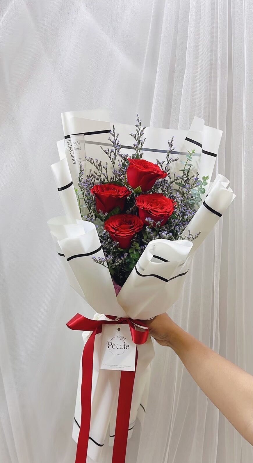 ช่อดอกกุหลาบนอกพรีเมี่ยม 4 ดอก ดอกใหญ่สวยงาม ช่อของจริงค่อนข้างใหญ่พอสมควร ช่อนี้คุ้มมากๆประทับใจทุกรายค่า