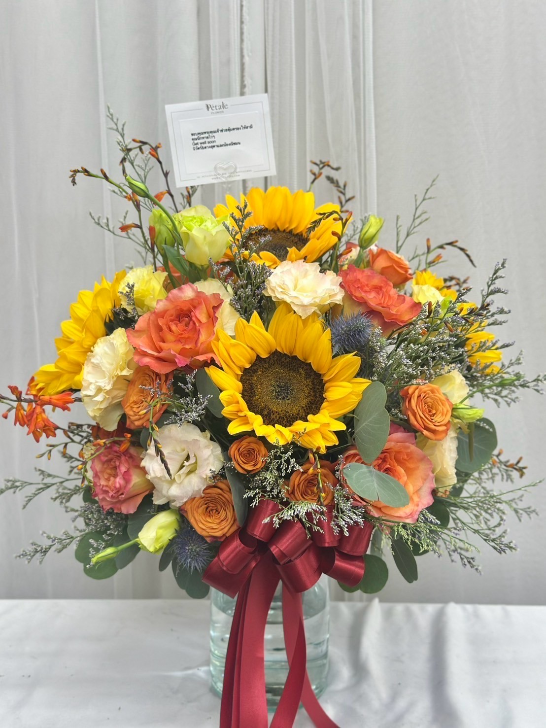 - สีและขนาดดอกไม้เเต่ละชนิดจะเเตกต่างตามฤดูกาล ร้านดอกไม้เราจะปรับเปลี่ยนให้สวยงามและเหมือนตามแบบมากที่สุด