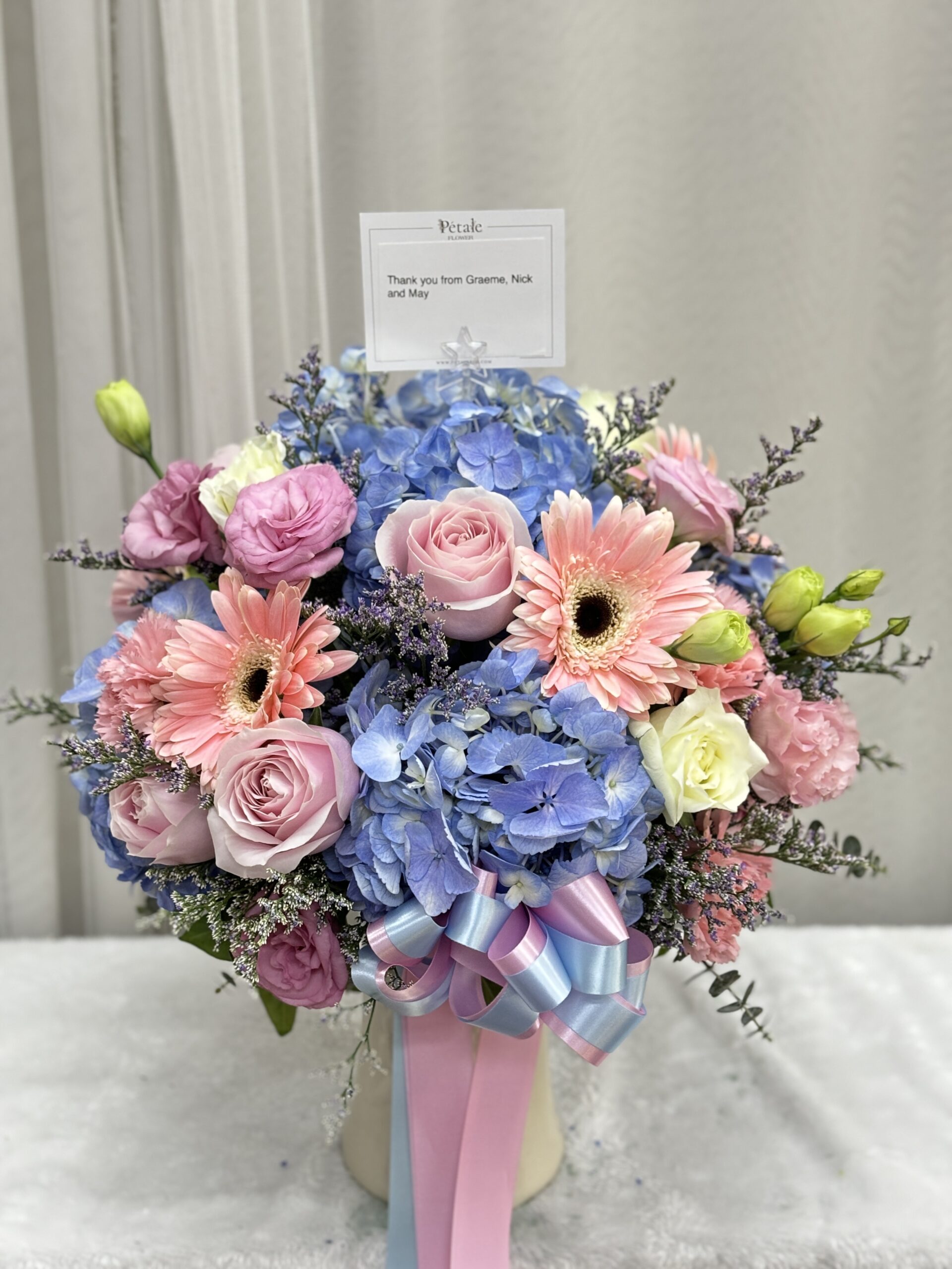 - สีและขนาดดอกไม้เเต่ละชนิดจะเเตกต่างตามฤดูกาล ร้านดอกไม้เราจะปรับเปลี่ยนให้สวยงามและเหมือนตามแบบมากที่สุด
